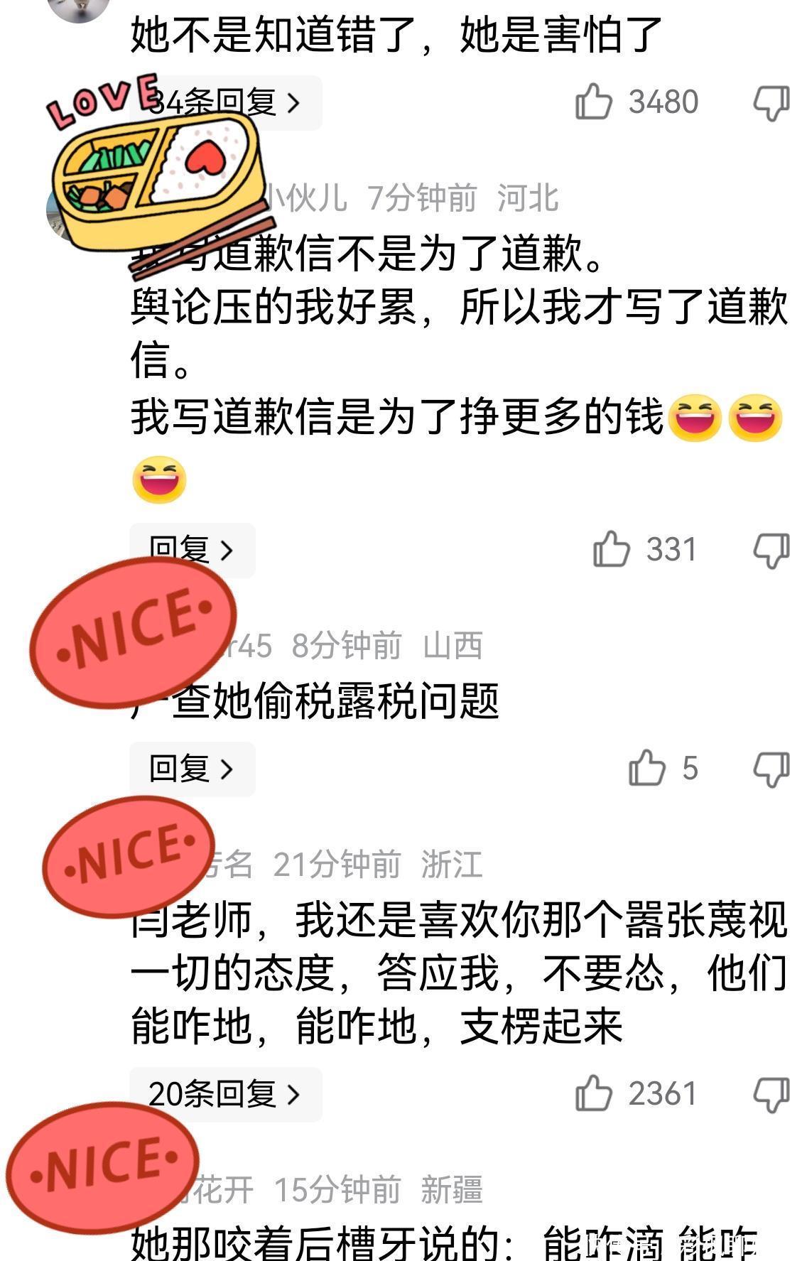 甚至有网友直接留言说,她不是知道自己错了,她只是害怕了。是呀,现在的这封道歉信看来真的更像是闫学晶害怕了,因为现在的她账号被封禁了,代言也都失去了,如果再不道歉可能她的演艺生涯就就此结束了!